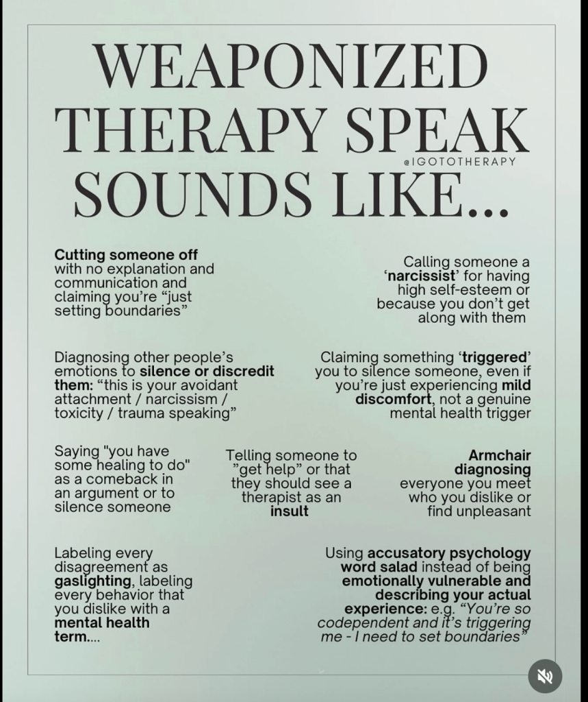 I am no longer tolerating armchair-therapists who weaponize my mental health diagnoses against me. If an unqualified, uncredentialed person, a friend, a family member, a foe, a whoever, tries to pathologize my growth, tells others their diagnosis of me, or goes so far as to use AI to analyze and pathologize me, all to avoid their own accountability, that is their coping mechanism. Armchair-psychology is destructive. It is hurtful. It is stigmatizing. It is not my truth, my experience, or my reality.